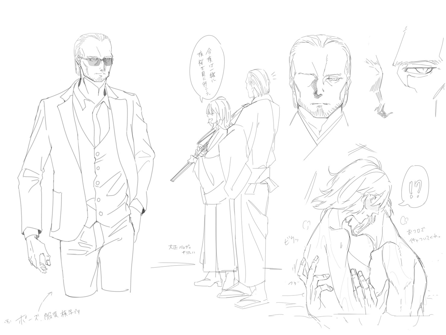 モデルさんがかっこよくてざっくりポーズと服だけ模写。但馬かっこいいから髪型もそれっぽくすれば、イケオジの幅が広がりそう。