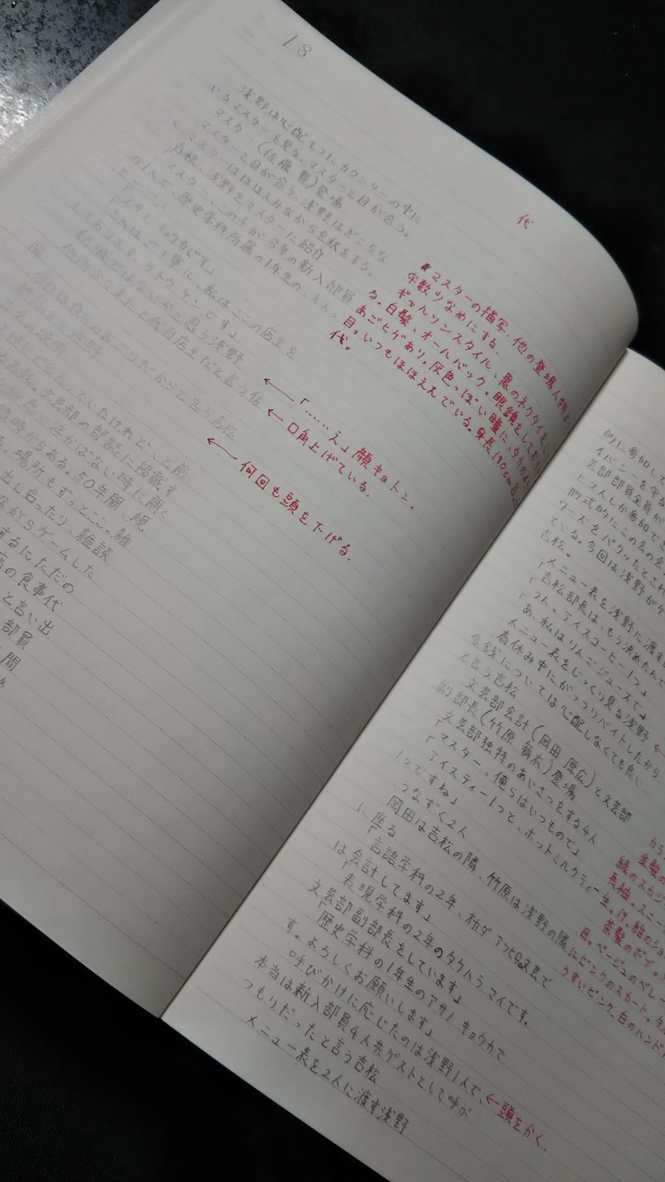 今書き進めている創作のプロットだけど、今まで試してきたプロットの形の中で一番書きやすい……左側に脚本でいうト書きのように流れや主な台詞とかをざっと書いて、右側に所々描写を書いていく感じ。赤にしているのは見やすさのため。 https://ichinyo.site/media/2UZHk48MKp2nrC-6ojI